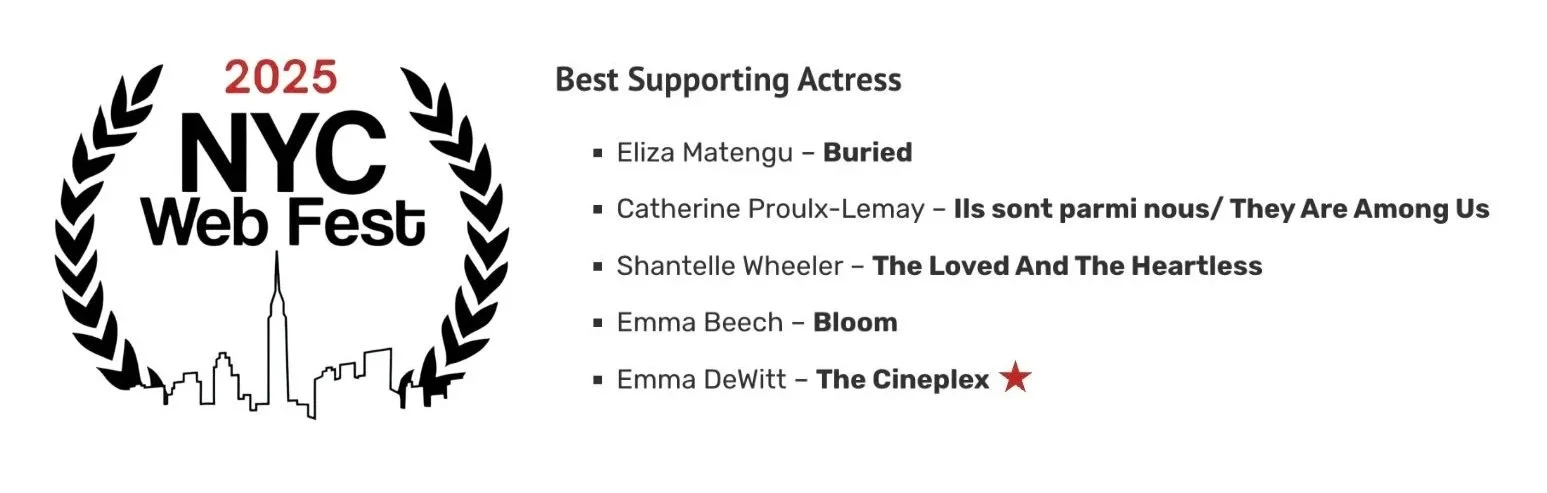 The Cineplex follows the misadventures of a group of misfit employees at a once-independent movie theatre turned corporate. Emma plays '“Nat”, the stoner concessions manager who’s goal each day is to do the least amount of work possible.